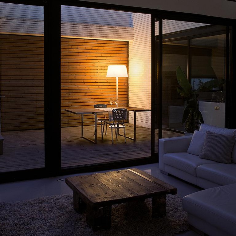 Si buscamos Equilibrio, otra opción ideal para iluminar una cena de exterior es la lámpara PLIS OUTDOOR, una colección ideada por el estudio Ramos & Bassols. Es una luminaria con una estética clásica y un equilibrio formal que consigue integrarse en cualquier ambiente, interior o exterior, de forma natural.