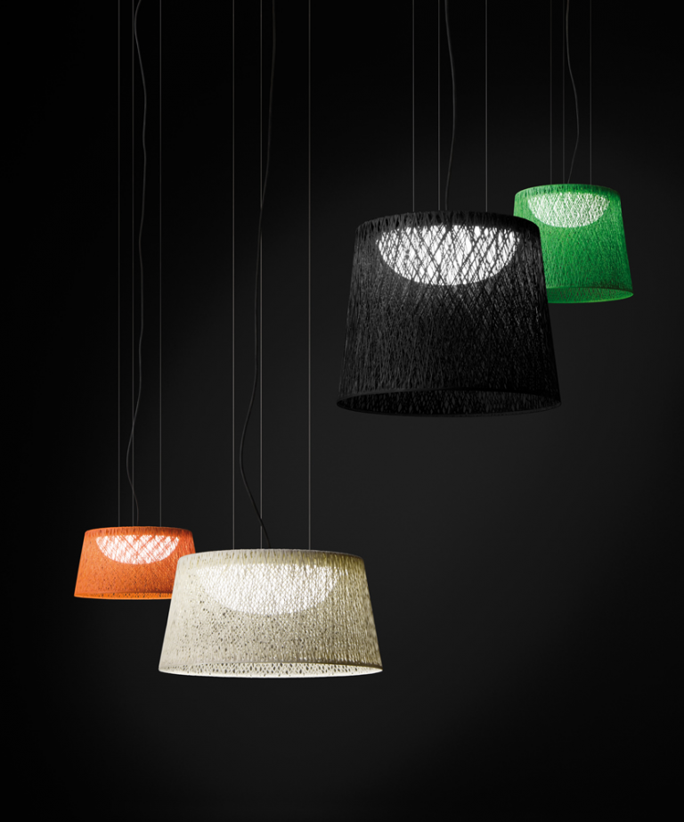 Para dar una nota de Color, la colección WIND destaca por el colorido alegre de sus piezas y la composición de su estructura y pantalla, elaboradas en fibra de vidrio. Ya sea en sus versiones de colgante o de pie, esta refrescante colección de Jordi Vilardell aporta luz y conversación en las reuniones de verano.